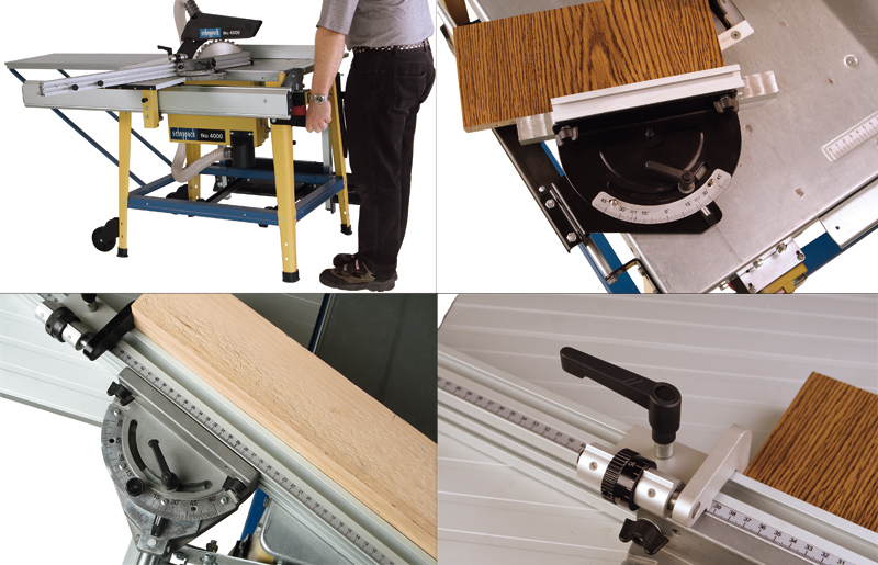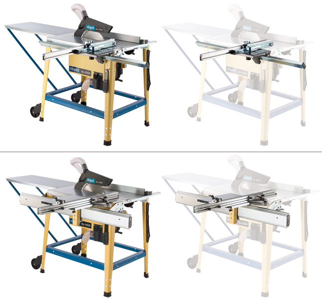 - Possibilité d'extension à l'usage professionnel, grâce à un dispositif de découpe de panneaux (rallonge latérale en option) et à un chariot précis (chariots coulissants en option, dont une version professionnelle).