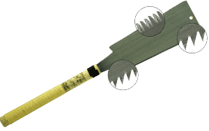 | L'affûtage des dents est vraiment le point qui fait toute la différence de ces scies. Les formes, très étudiées, sont le reflet de la finesse et du savoir faire des artisans japonais. |