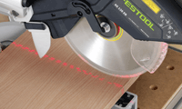 Que vous coupiez à gauche ou à droite de la lame, le laser à double ligne vous indique avec précision la largeur du trait de coupe. Il est visible sur le dessus et le devant de la pièce à scier. Pour toujours couper "pile sur le trait" !