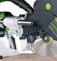 Et grâce au système de coulissement à double barre plus rien ne dépasse à l'arrière de la scie et la lame est guidée avec extrême précision et parfaite stabilité grâce aux roulements internes.