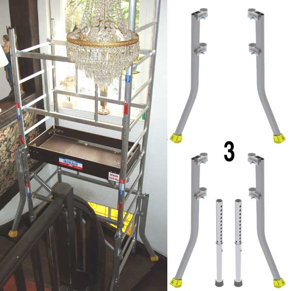 Pour l'installation sûre et stable de l'échafaudage M-MAX dans un escalier. Comprend 4 stabilisateurs + 2 pieds réglables sans roue.