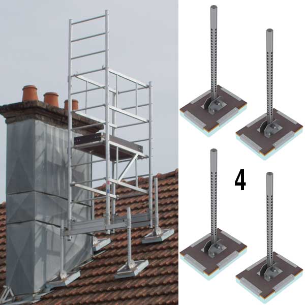 Pour l'installation de l'échafaudage sur une toiture. Comprend 4 patins larges inclinables.