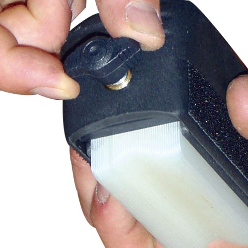 Il suffit donc d'appliquer la cale sur le profil à poncer pour " copier " sa courbe en négatif, puis, d'un tour de clé, bloquer les lamelles de la semelle dans cette position.