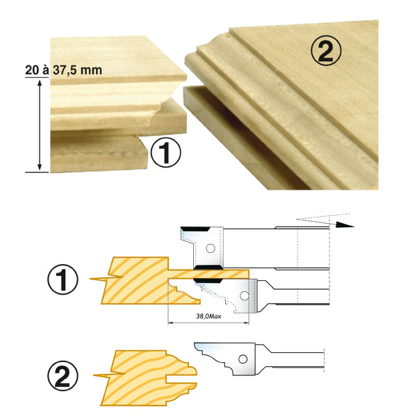 - En simple parement, usinage de bois de 20 à 37,5 mm d'épaisseur.