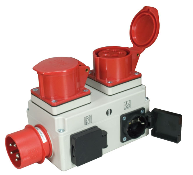 - Pour confectionner rallonge et raccorder les machines triphasées, nous disposons aussi de prises mâle et femelles aux norme CE en 16 A (3 phase + neutre + terre)