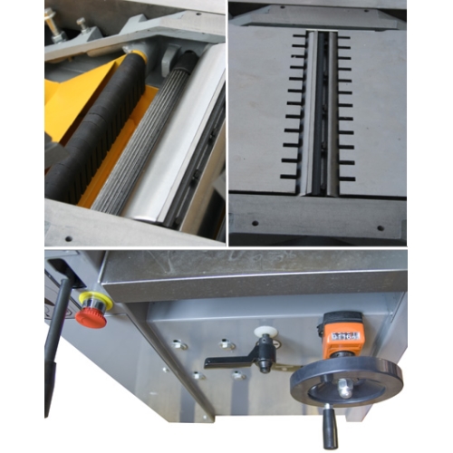 Arbre de coupe à 3 fers. Le tables rectifiés et en fonte procurent à la machine robustesse et précision. Le grand diamètre du fût central à verrouillage direct de la table, soutenu d'une barre de guidage fournit une grande précision dans la prise de passe. Elles offrent des grandes puissances moteur, ce qui vous assure un travail sans efforts y compris lors d'usinage de grandes dimensions ou particulièrement gauches.