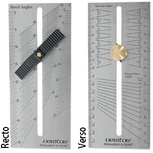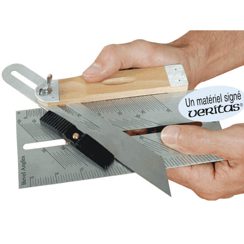 Bien plus précise qu'un rapporteur utilisé dans les mêmes conditions, l'équerre-jauge Veritas comporte deux faces utiles gravées. Elle offre instantanément quatre fonctions :