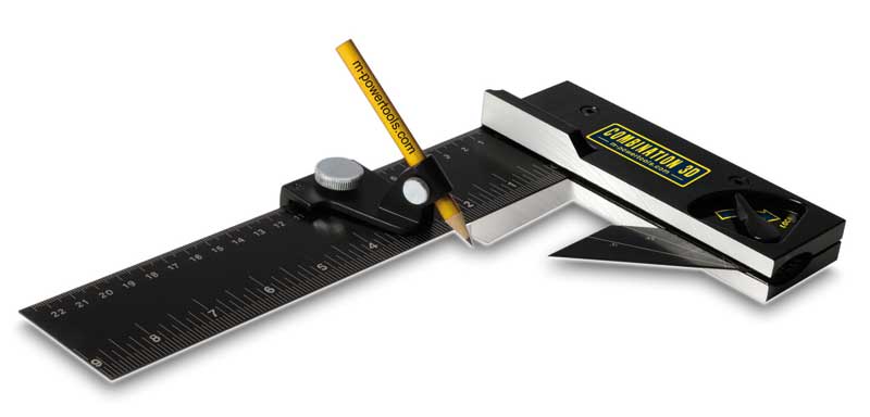 Livraison : équerre (avec renvoi et fausse équerre), trusquin porte-crayon, crayon, notice.