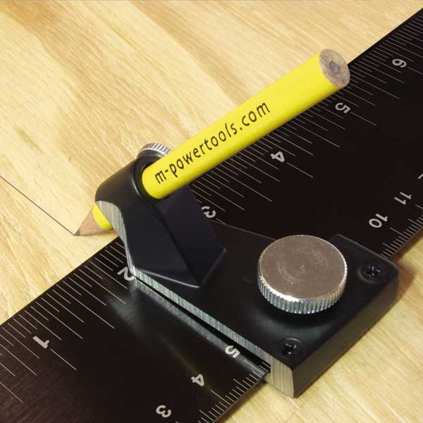 Il est équipé d'un crayon. L'ensemble se déplace sur la longueur de la règle de l'équerre puis se bloque en position pour obtenir une parfaite précision dans tous les tracés parallèles au chant.