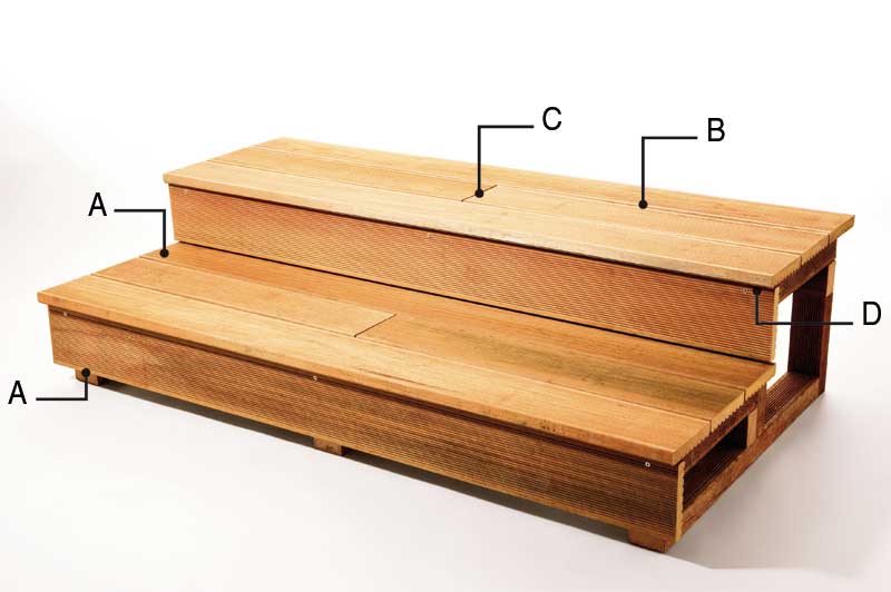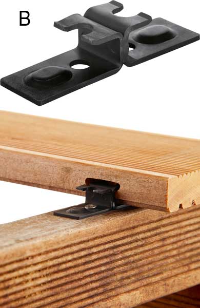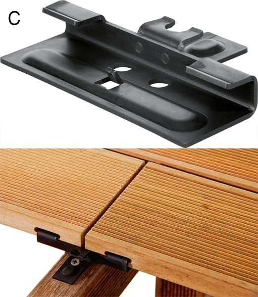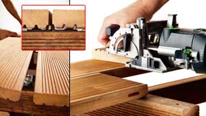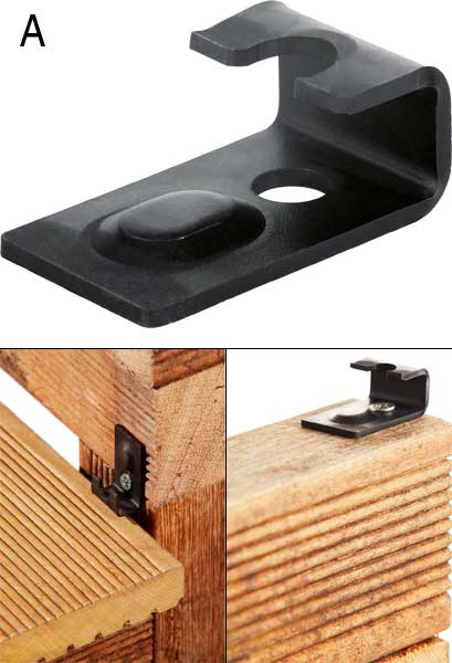 Pour l'installation pratique et rapide des lattes de terrasse, un système de jointure invisible : pas de vis ou d'éléments de quincaillerie apparents, la surface des bois reste inaltérée.