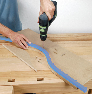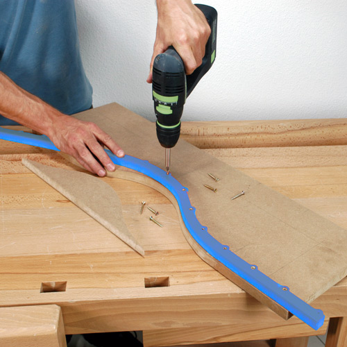 Il vous suffit de tracer votre courbe sur un panneau (en contreplaqué, médium, etc.) qui deviendra votre futur gabarit à chantourner. Puis, après dégrossissage de la courbe à la scie sauteuse ou à ruban, vous y vissez le "Multicourbe", exactement sur le tracé. Il ne reste alors plus qu'à passer l'ensemble au calibreur de toupie ou à la fraise à copier de défonceuse, en veillant à appuyer le guide à bille contre le "Multicourbe". La forme sera alors exactement reproduite !