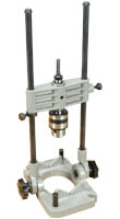 Fabrication en plastique (corps et semelle) et acier (mandrin, coulisseaux et butée). Capacité du mandrin porte-mèches : 10 mm. Livré sans perceuse-visseuse.