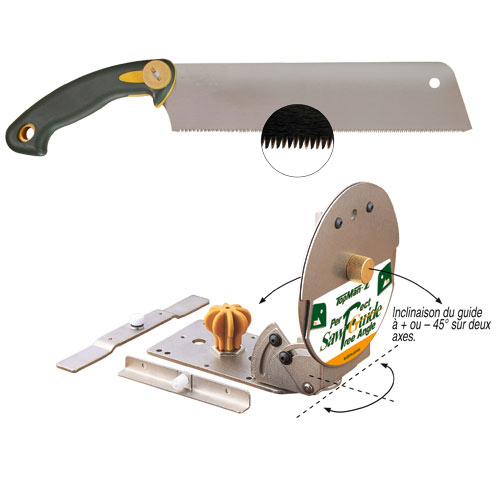 L'ensemble de sciage TOPMAN combine ingénieusement la précision d'un guide d'onglet réglable sur deux axes au rendement et à la qualité de coupe fabuleuse d'une scie à denture japonaise, usinée dans un acier extrêmement fin et résistant.