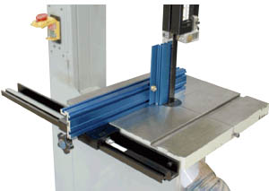 En option, un système de réglage micrométrique complémentaire permettra de pointer le chariot coulissant avec une extrême précision. Particulièrement utile pour la découpe des placages à la scie à ruban et d'une manière plus générale à la scie circulaire.