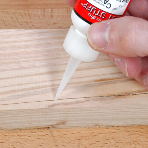 Plus connues sous le nom désormais générique de "super glue", les colles cyanoacrylates, très polyvalentes, conviennent à la plupart des matériaux courants et des surfaces difficiles : bois, papier et carton, cuir, métaux, faïence et porcelaine, plastiques et PVC, etc. De part leur très grande efficacité et leur temps de prise très rapide, elles s'avèrent très pratiques dans le travail du bois, en particulier pour les petits assemblages, les réparations, les rebouchages de fissures, etc.