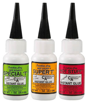 Les colles Hot Stuff se déclinent en trois fluidités (ou viscosités) différentes, adaptées chacune à certaines utilisations et collages spécifiques. L'idéal étant de disposer en permanence des trois types :