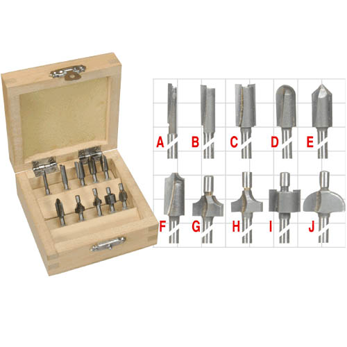 10 modèles de mini-fraises en acier au tungstène-molybdène (en queues de 3,2 mm) sont proposées en coffret où à l'unité (cliquez sur l'image ci-contre pour les voir). Un jeu de 6 pinces de serrage (Ø 1 - 1,,4 - 3 et 3,2 mm) est livré avec la défonceuse, elles pourront vous permettre le montage d'autres accessoires du marché.