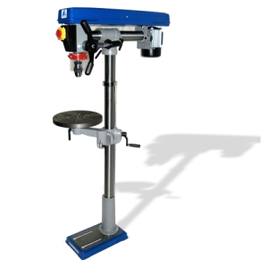 Perceuse de fabrication robuste, avec des colonnes de grand diamètre. Elle est équipée de mandrin à serrage rapide. Système de transmissions par courroies trapézoïdales. Table inclinable à 45°, réglable en hauteur grâce à un système de crémaillère. Micro rupteur de sécurité sur capot. Ecran de protection du mandrin basculant et translucide. Interrupteur de sécurité avec système intégré d'arrêt d'urgence «coup de poing». Le moteur très puissants allié à la démultiplication de vitesse procure assez de puissance pour le perçage de gros de diamètre, l'utilisation de scies cloches. Les perceuses radiales permettent d'obtenir un col de cygne très utile pour certains travaux. Grâce à leur tête pivotante, possibilité de perçage angulaires et difficiles.