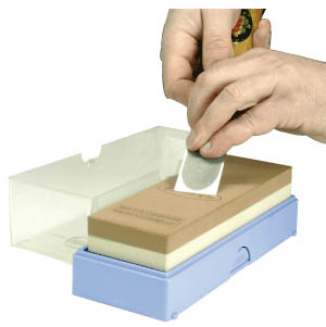 Notre pierre japonaise, grâce à sa grande finesse, offre un affûtage rapide et une finition de tranchant parfaitement polie.