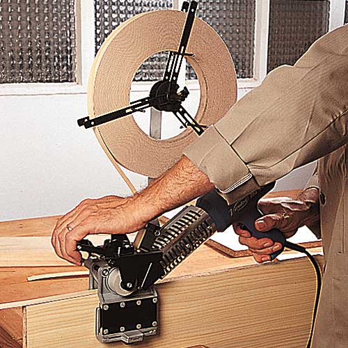 - Rapidité des opérations de placage qui se font en une seule étape : chauffe de la colle puis pressage du chant. Il ne reste ensuite plus qu'à l'araser.