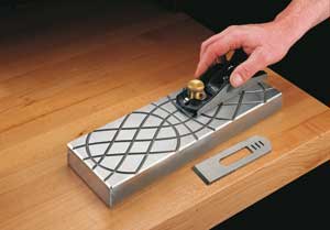 Un accessoire utile pour améliorer la qualité de surface des semelles et fers de rabot ainsi que les planches des ciseaux à bois. Utilisée avec un mélange d'huile et de poudres abrasives au carbure de silicium (différentes granulométries sont disponibles), elle permet de "roder", c'est à dire de remettre en état ces surfaces (le rodage est le frottement de deux surfaces l'une contre l'autre, à l'aide d'un abrasif et d'un lubrifiant, afin d'améliorer la qualité d'une des surfaces).