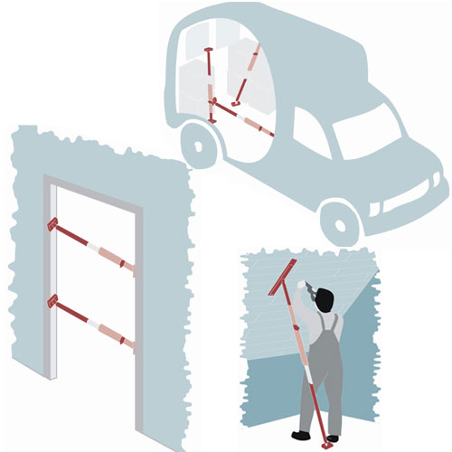 Des outils ultra pratiques qui deviennent vite indispensables pour de nombreux travaux de pose sur chantier ! Les étais télescopiques permettent enfin de s'en sortir seul là où jusqu'alors une aide extérieure était nécessaire : pose de placoplâtre, de lambris au plafond, de tasseaux divers, d'huisseries de portes et fenêtres, etc. D'autres applications annexes sont également possibles comme le maintien de panneaux dans un véhicule durant le transport, etc.