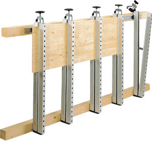 La presse Plano se fixe au mur par l'intermédiaire de traverses en bois dotées d'une légère pente afin de faciliter l'empilage et le positionnement des pièces à encoller. Grâce à ce système, plus besoin d'installer des tréteaux et des presses horizontales (dormants ou serre-joints) gourmands en espace dans l'atelier.