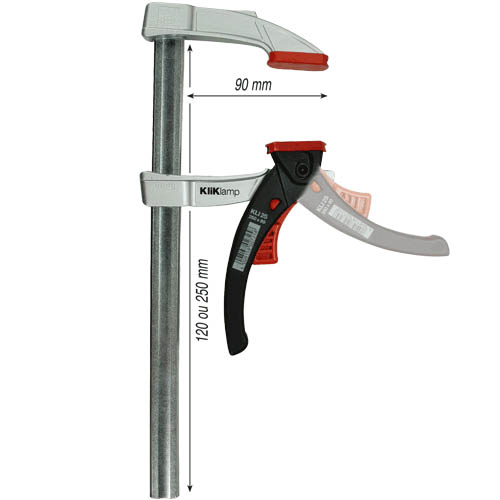 Les presses à serrage rapide légères Kliklamp sont maniables et d'un confort d'utilisation parfait. Les matériaux fragiles sont une de leurs principales applications car leur faible poids n'est donc plus un facteur contraignant. Ce sont également des outils idéaux de caisse à outils. Elles sont composées de matériaux innovants comme l'alliage de magnésium, le polyamide renforcé de fibre de verre et l'acier étiré à froid. Leur puissance de serrage est obtenue sans effort et atteint 1200 N.