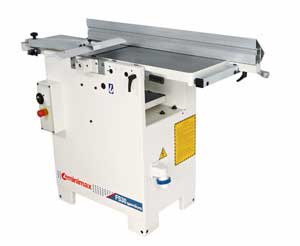 Équipée d'un arbre Ø 62 mm à deux couteaux affûtables pour une largeur d'usinage atteignant 300 mm. La forte puissance moteur autorise une prise de passe maxi de 3 mm sans peiner. Confortable longueur totale des tables de 1200 mm. Large guide en extrudé d'aluminium anodisé et blocable en position par un robuste support. Il se positionne à 90° et 45° et sa grande dimension (1090 x 120 mm) est particulièrement appréciée. Réglage de la table d'entrée par levier. Livré avec gabarit de réglage des fers.