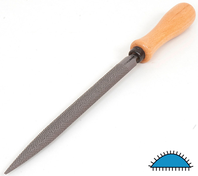 Excellente râpe de finition étroite et maniable pour accéder aux endroits les plus étroits. Voilà un bon outil de préparation à la finition à utiliser juste avant le racloir. Longueur 200 mm, largeur 16 mm, épaisseur 5 mm, piqure n° 12.