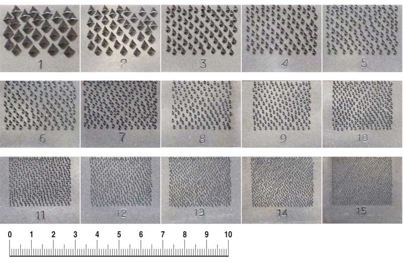 Selon les modèles et les dimensions des râpes, elles sont munies de la piqure la plus adaptée. Reportez-vous au nuancier ci-joint (photo) pour visualiser le numéro et la taille de la piqure.
