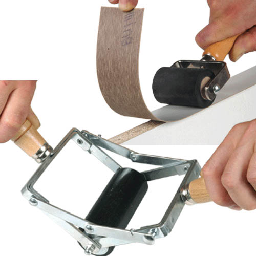 Cet étroit rouleau caoutchouté muni d'une poignée en hêtre est idéal pour le collage de chants en placage ou en stratifié. Son rouleau en caoutchouc dense épouse les irrégularités sans marquer les surfaces.