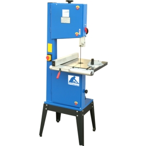 Scie à ruban stable dotée d'une table inclinable. Guide lame supérieur et inférieur à 3 galets procurant une excellente précision de sciage. Table renforcée en fonte. Grande capacité de coupe. Moteur frein. Volants en fonte d'aluminium.