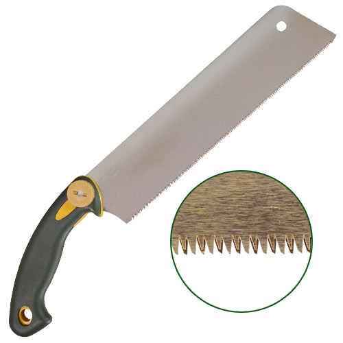 Un très bon compromis entre les scies égoïnes habituelles en Europe et les scies japonaises "pures et dures". La forme "Revolver" de son manche est moins déroutante au premier abord que les manches droits japonais (pourtant très confortables à l'usage!). Sa denture est affûtée pour une utilisation "en tirant" et sa dimension moyenne offre un rendement de coupe époustouflant !