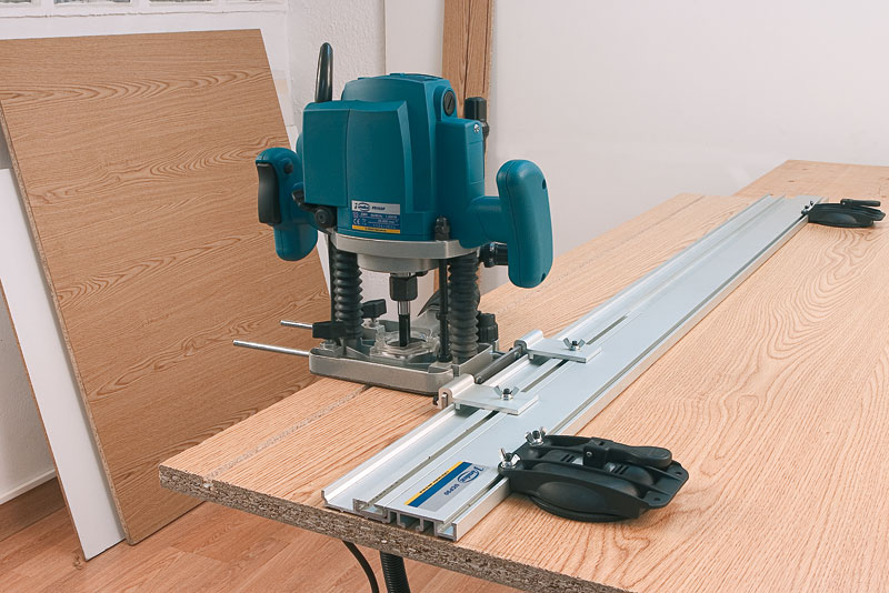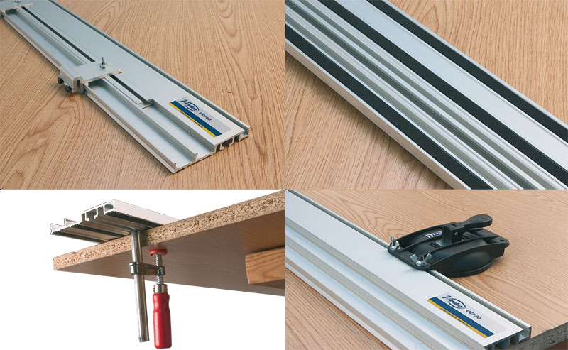 Rail complet longueur 1400 mm, 2 ventouses, 2 serre-joints. Prévoir en option un dispositif de fixation pour votre machine électroportative Virutex (au choix en option ci-dessous).