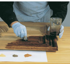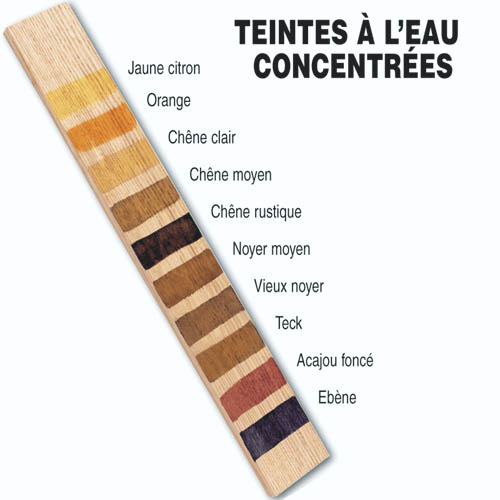 Ces teintes sont composées d'extrait de cassel (brou de noix) et de colorants minéraux. Elles sont économiques et très faciles à préparer (50 g de poudre dans 1 litre d'eau). Existe en 10 teintes miscibles et peuvent se concentrer ou se diluer à l'eau à volonté.