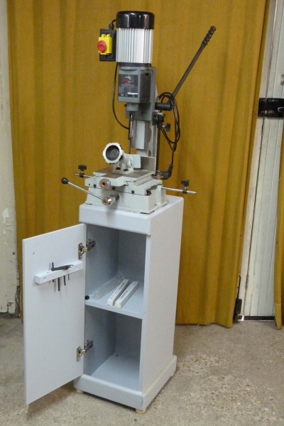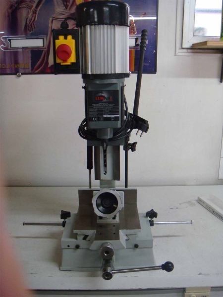 Mortaiseuse à bédane, de marque Leman avec meuble socle. Munie d'une table sur double chariot de déplacement. Rotation de la colonne sur sa base à 180°, très bon état servi 4 fois. Valeur 450 euros sans meuble. Vendue 300 euros avec deux bédane 8 et 10 et son meuble.