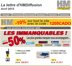 HM Diffusion vous propose de recevoir régulièrement par e-mail ses lettres d'information (newsletter), une mine de renseignements et de bonnes affaires sur le travail du bois !