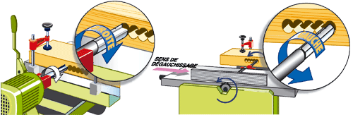 BON À SAVOIR : les mèches à mortaiser existent en rotation à gauche et rotation à droite. 90 % des machines tournent à gauche, c'est-à-dire dans le sens inverse d'une perceuse. C'est en particulier le cas de toutes les mortaiseuses en bout d'arbre de dégauchisseuse.