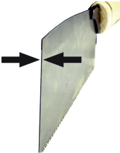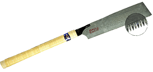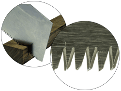 | L'affûtage des dents est vraiment le point qui fait toute la différence de ces scies. Les formes, très étudiées, sont le reflet de la finesse et du savoir faire des artisans japonais. |