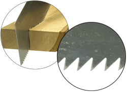 Les dents sont affûtées selon 3 biseaux : 1 pour scier, 1 pour faciliter l'évacuation des copeaux et 1 en extrémité de dent qui joue le rôle d'inciseur.