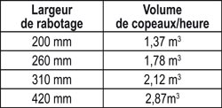 Test n°3 : Évaluation des volumes de copeaux produits et aspirés dans les conditions de rabotage définies pour notre test. |
