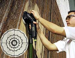 Pour un ponçage de grand rendement grâce à une capacité d'enlèvement très élevée (ponçage de dégrossissage, élimination de vielles peintures, travaux de rénovation, ponçage de planches brutes, etc.).